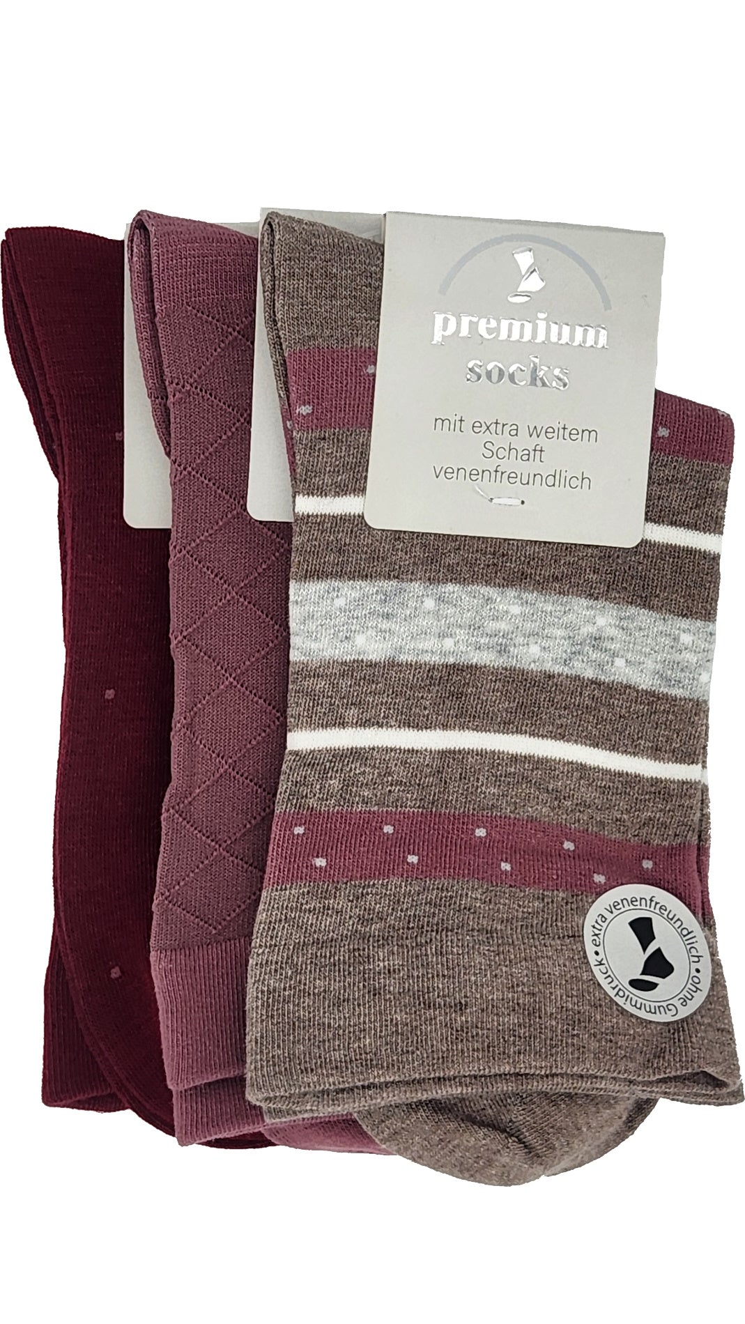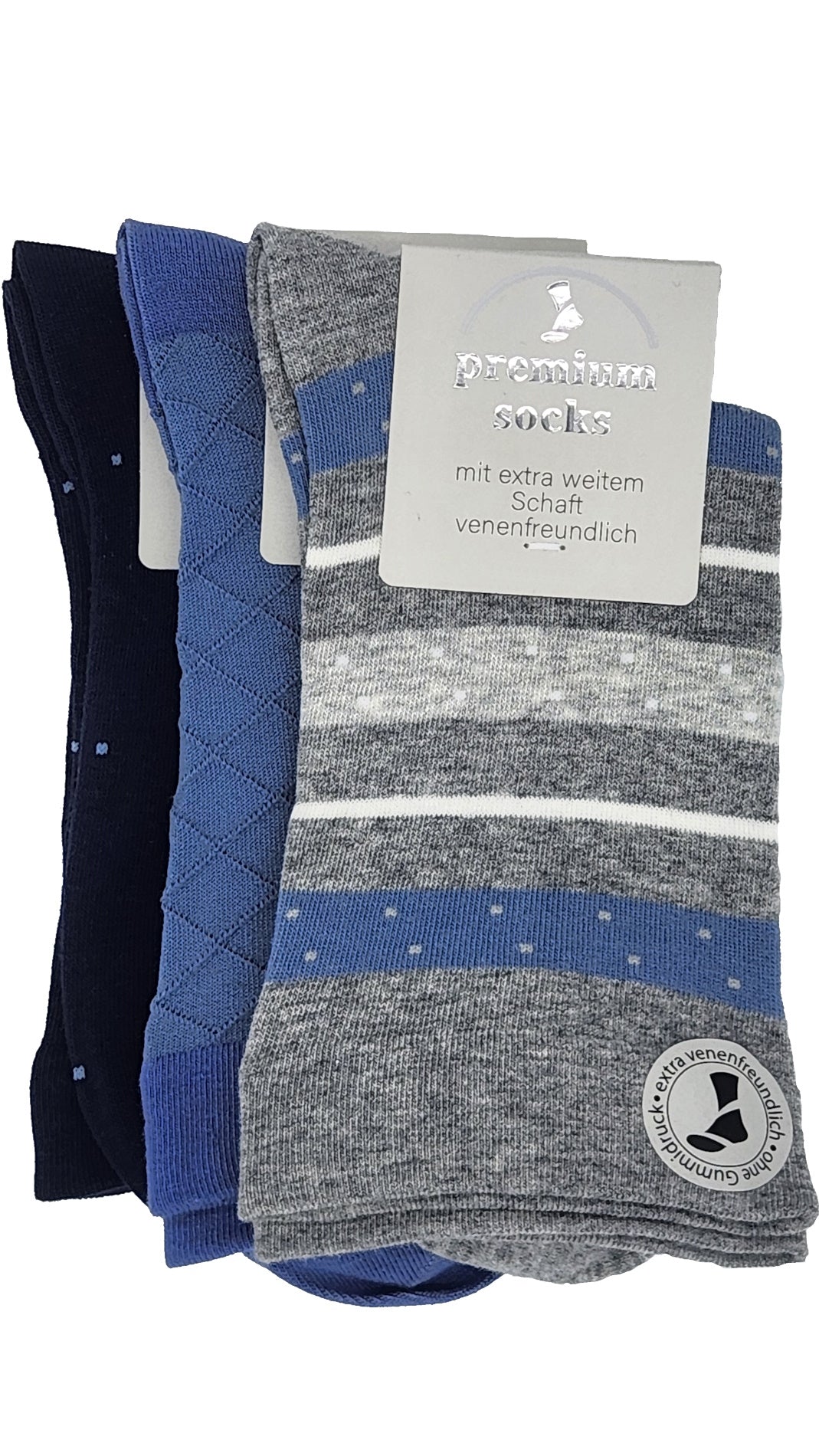 Unsere Gesundheitssocken mit EXTRA weitem Bund. Die weite Form der Schaftpartie überzeugt durch besonderen Tragekomfort. Sie ist extra venenfreundlich, da sie ohne drückenden Bund gearbeitet ist. Die Spitze ist handgekettelt, daher können Druckstellen an den Füßen vermieden werden. Es wurden hochwertiger Materialien verwendet , sie unterstützen Ihren Komfort und Ihre Gesundheit. Jede Socke im Bund, unterschiedliches Muster und unterschiedliche Farbkombis.