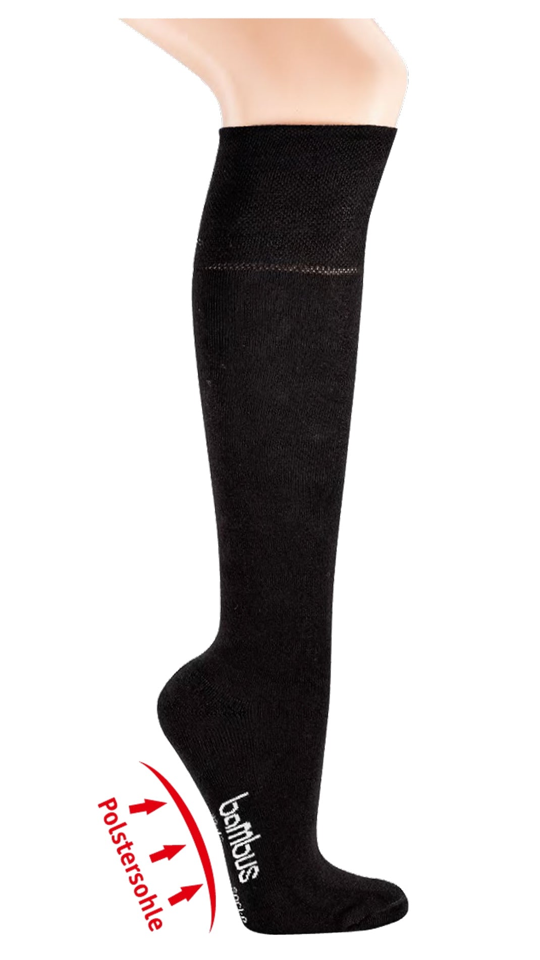 Gesundheits-Kniestrümpfe Bambus Frotteesohle 2 Paar schwarz (6469)