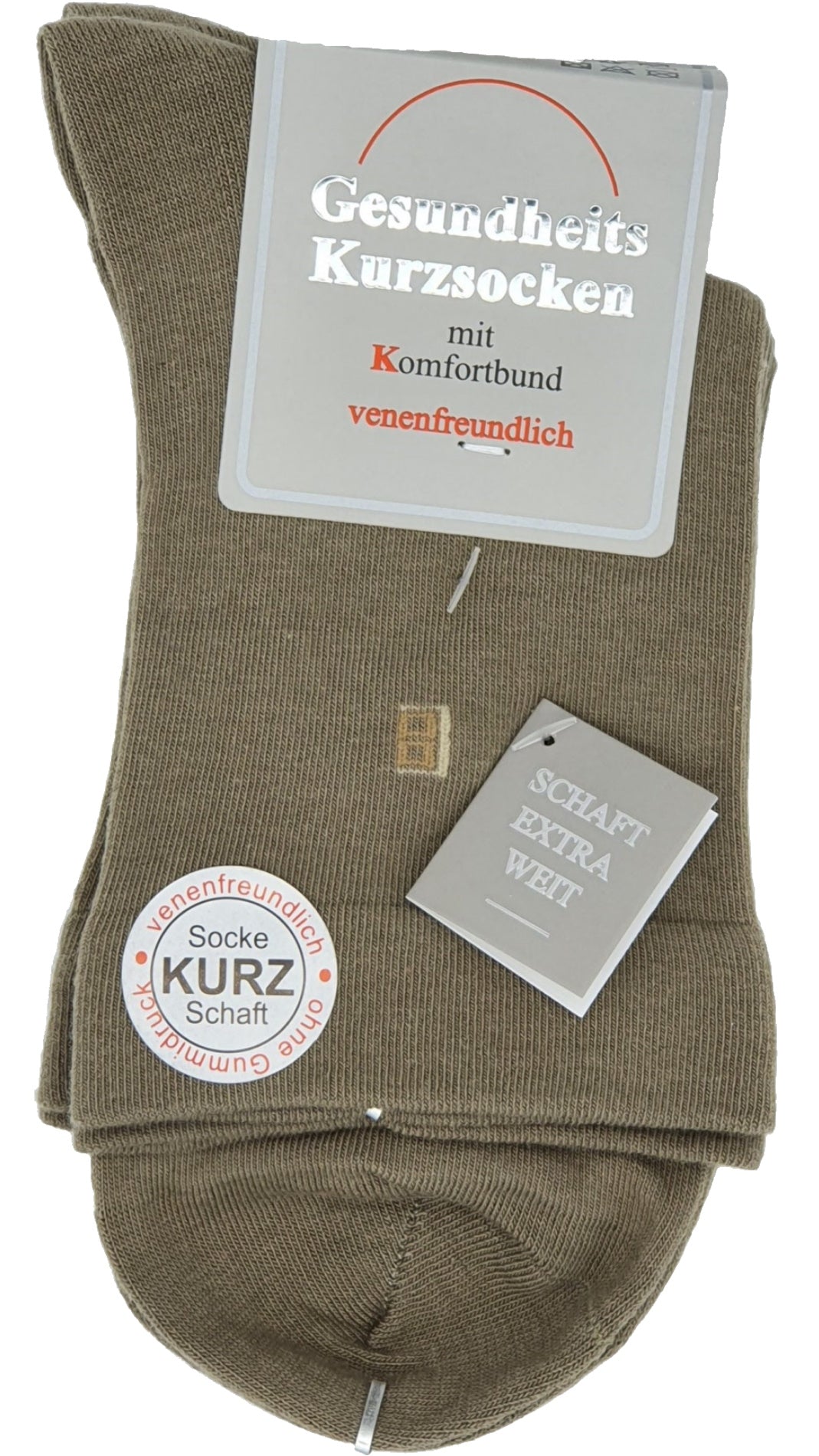 Unsere Gesundheitssocken mit EXTRA weitem Bund. Die weite Form der Schaftpartie überzeugt durch besonderen Tragekomfort. Sie ist extra venenfreundlich, da sie ohne drückenden Bund gearbeitet ist. Die Spitze ist handgekettelt, daher können Druckstellen an den Füßen vermieden werden. Es wurden hochwertiger Materialien verwendet , sie unterstützen Ihren Komfort und Ihre Gesundheit. 3 Paar ein kleines Muster. 3 Paar im Bund, gleiche Farbe.