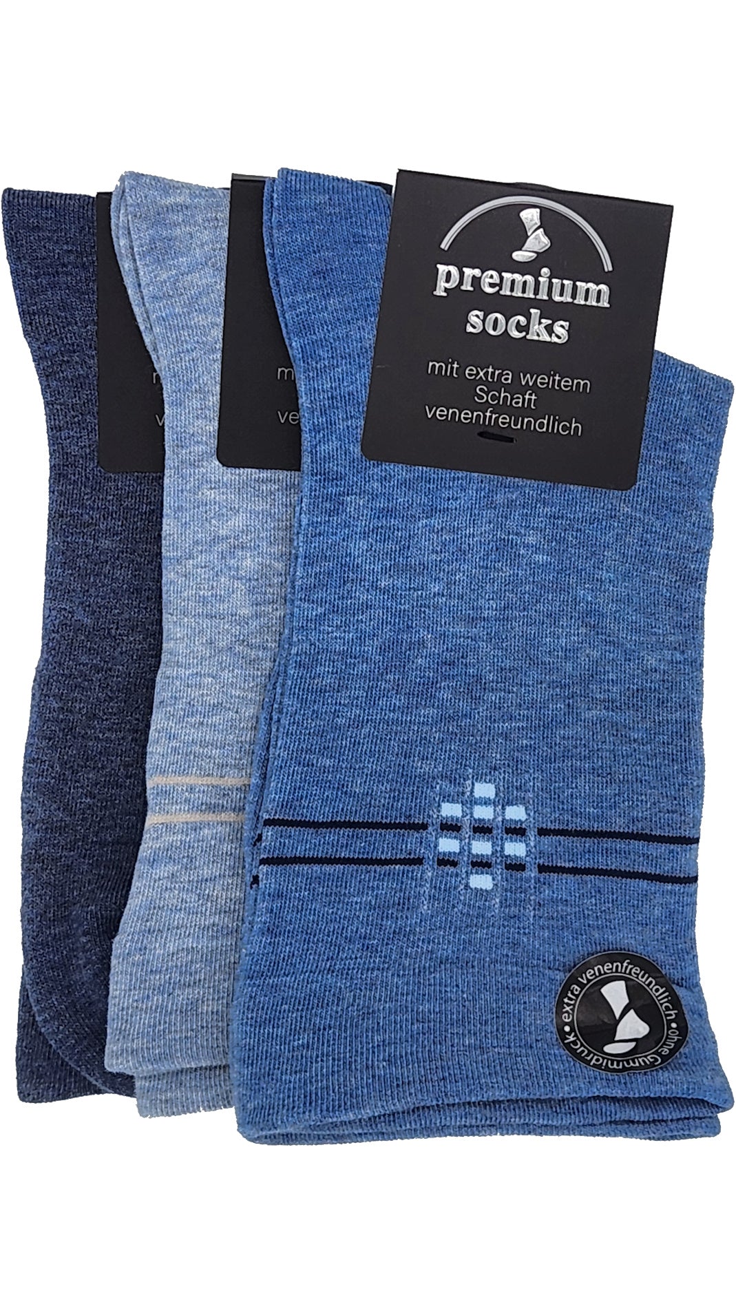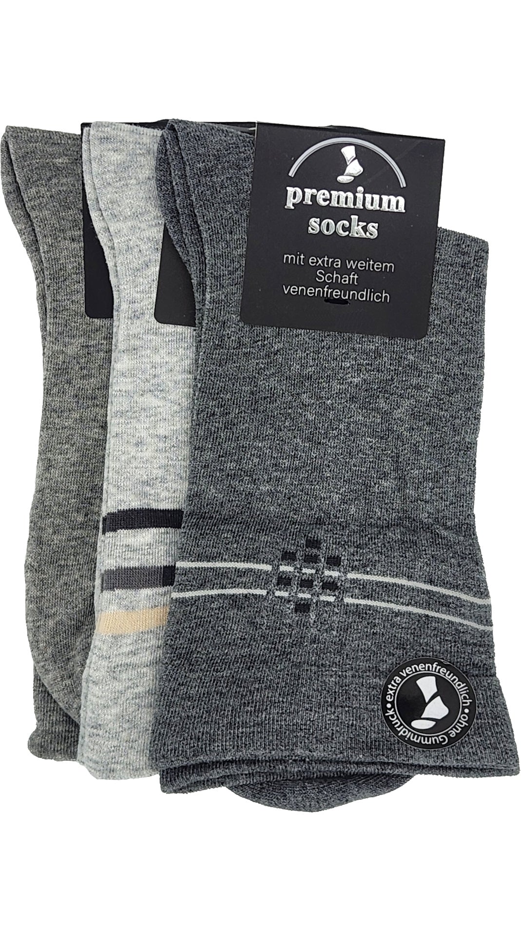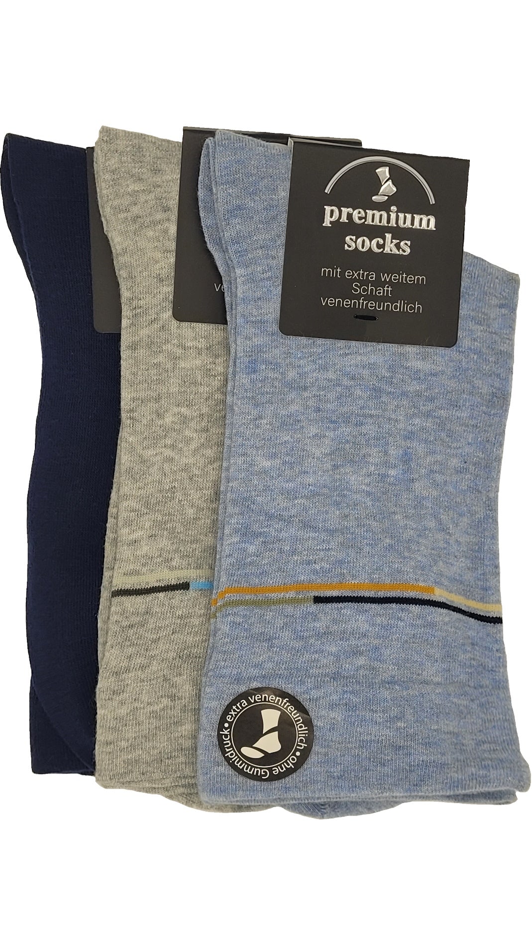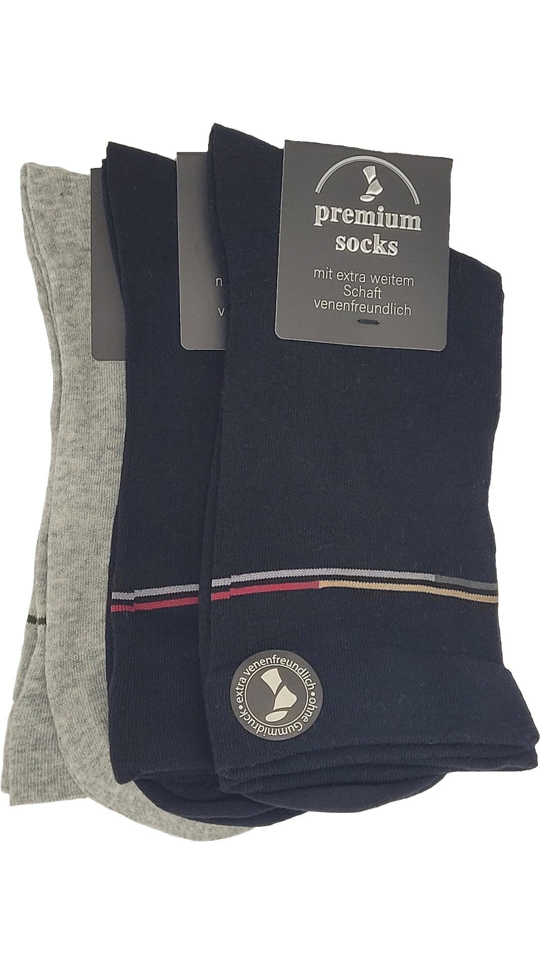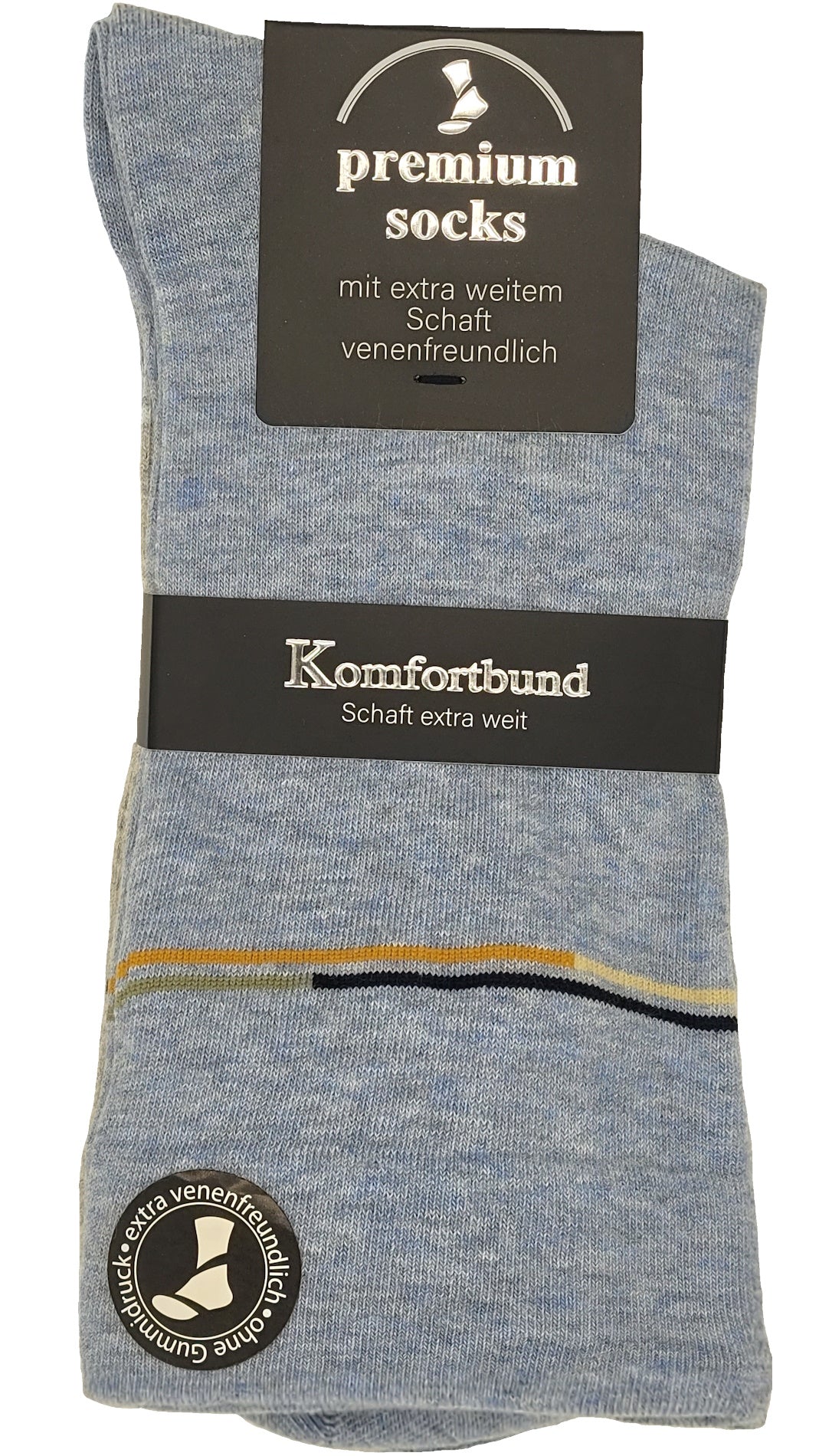 Unsere Gesundheitssocken mit EXTRA weitem Bund und dezentem Motiv im Schaft. Die weite Form der Schaftpartie überzeugt durch besonderen Tragekomfort. Sie ist extra venenfreundlich, da sie ohne drückenden Bund gearbeitet ist. Die Spitze ist handgekettelt, daher können Druckstellen an den Füßen vermieden werden. Es wurden hochwertiger Materialien verwendet , sie unterstützen Ihren Komfort und Ihre Gesundheit.