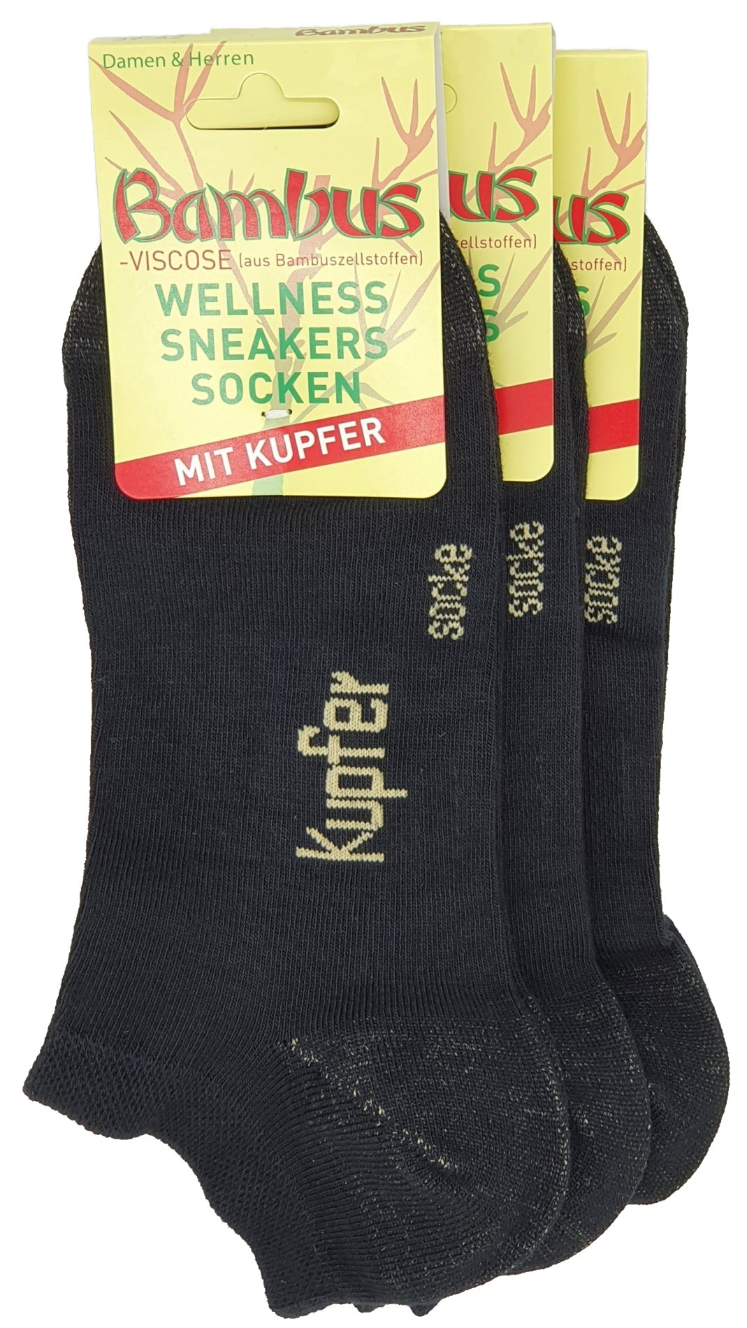 Qualität und Tragekomfort für Ihre Füße. Hautfreundliche Materialien. Perfekte Passform durch Elasthan. Durch den kurzen Schaft, kein einschnüren mehr an den Beinen. Die aus dem regenerativen Naturrohstoff Bambus gewonnene Viskosefaser, zeichnet sich durch ihre seidig weiche und glänzende Oberfläche aus. Textilien aus Bambus haben ähnliche Eigenschaften wie Seiden-Erzeugnisse, die sich durch eine hohe Atmungsaktivität und Feuchtigkeitsaufnahme auszeichnen. Der Bambus gilt als Symbol langes Leben, Glück, Freundschaft und Reinheit. In Verbindung mit Kupfergarn an Spitze und Ferse, wirken die Socken antistatisch, antibakteriell, desodorierend und abschirmend. Diese Wohlfühlfasern wirken klimaausgleichend und beeinflusst das körperliche Wohlbefinden positiv.