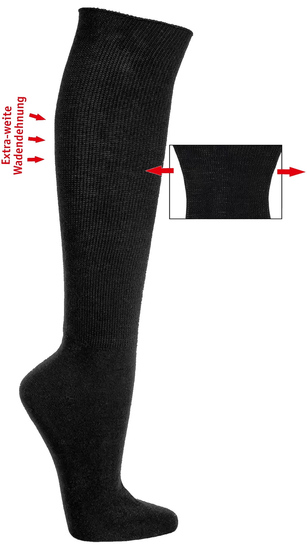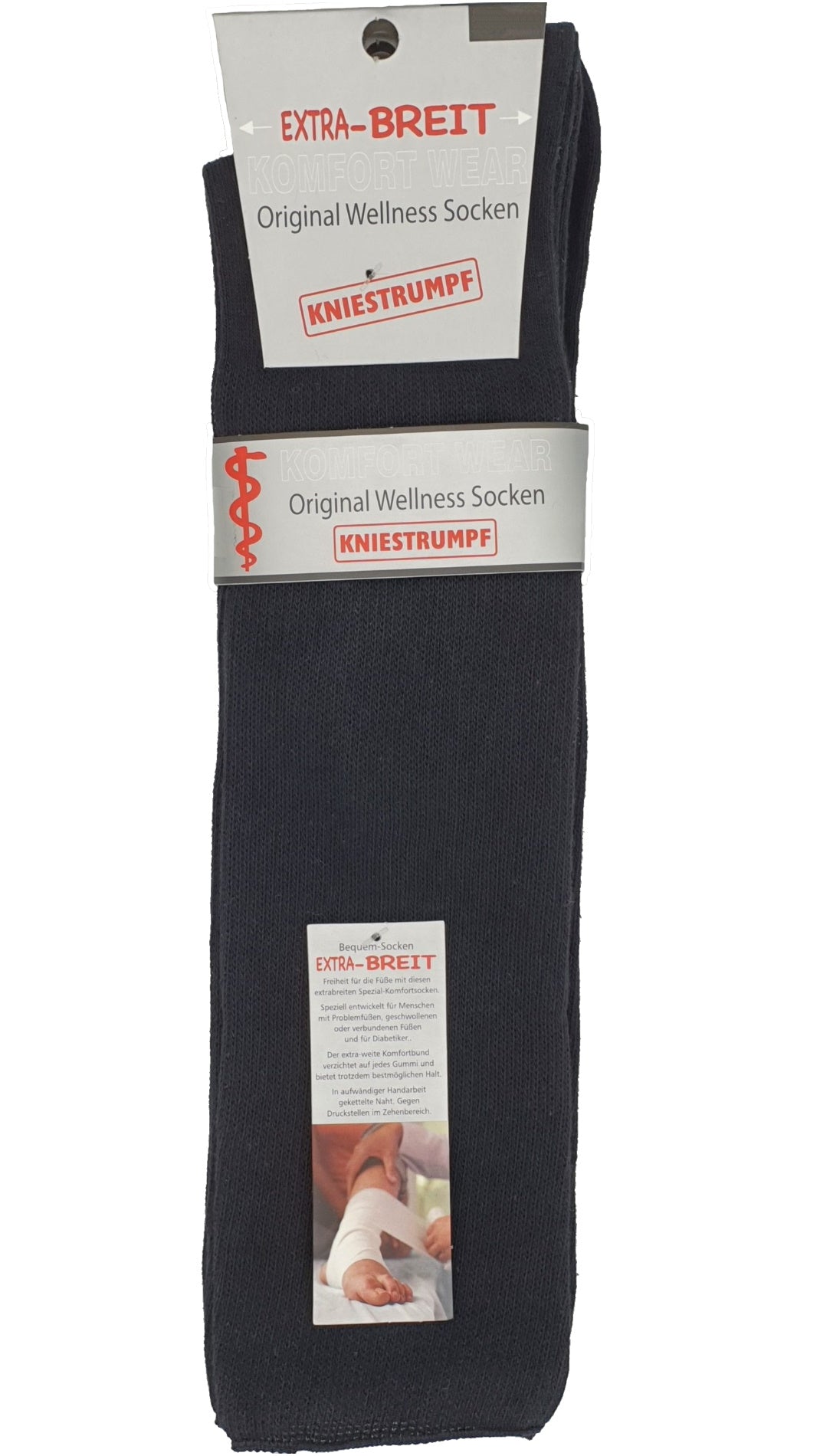 Die Gesundheitssocken mit EXTRA weitem Bund und EXTRA breiten Ballen. Der extraweite Komfortbund verzichtet auf jedes Gummi und bietet trotzdem bestmöglichen Halt ohne einzuschnüren. Die traditionell handgekettelte weiche Naht verhindert Druckstellen an den Zehen. Speziell entwickelt für Menschen mit Problemfüßen, geschwollenen oder verbundenen Füßen.