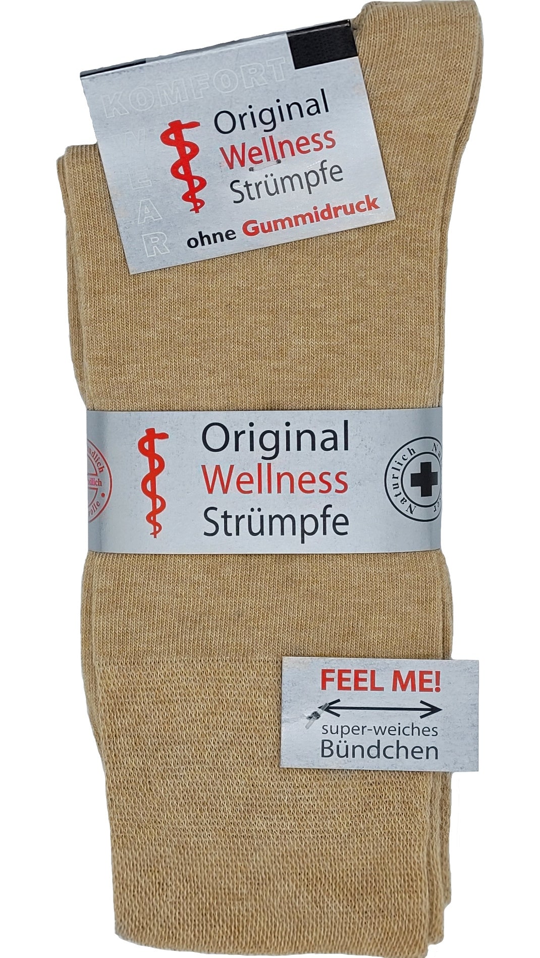 Der breite Piqué-Bund verzichtet auf jedes Gummi und bietet trotzdem bestmöglichen Halt ohne einzuschnüren. Durch die Beimischung von hochwertigem Elasthan haben wir hier eine stützende und eine durchblutungsfreundliche Wirkung am Bein. Hergestellt mit hohem Baumwollanteil und daher mit hervorragenden Klimaeigenschaften ausgestattet.
